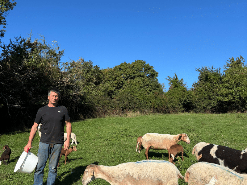 Au GAEC de Chaix, Serge Sevenier, son fils Rémi et sa belle-fille Mathilde Florenson élèvent 60 vaches allaitantes et 200 brebis sur 200 hectares. Éleveurs passionnés depuis plus de 40 ans, ils nourrissent leurs animaux avec des céréales et les fourrages de l’exploitation. Le bien-être animal est leur priorité : les animaux passent avant tout. Leur fierté est de voir leurs bêtes en bonne santé et en confiance. Partenaires de longue date avec Thierry, ils défendent les circuits courts pour plus de transparence et de proximité.